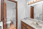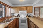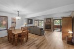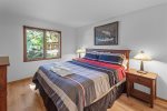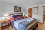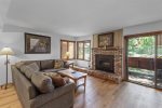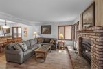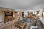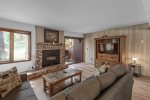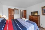 This bright ground-floor corner unit is all on one level with no stairs to enter. The primary bedroom includes a king bed and flat-screen Smart TV. The living room offers a queen sofa bed, large flat-screen Smart TV, Wi-Fi, and comfortable seating with plenty of natural light and mountain views.