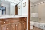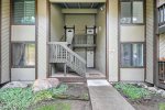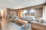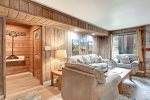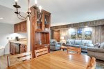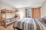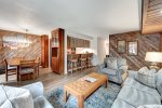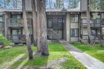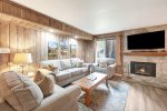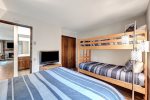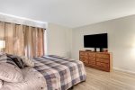 This ground-floor unit is all on one level for easy access. The primary bedroom features a king bed and flat-screen Smart TV. The second bedroom includes a queen bed and a set of twin bunk beds. A second flat-screen Smart TV is located in the living room, which also offers a wood-burning stove (wood provided), Wi-Fi, and comfortable seating.